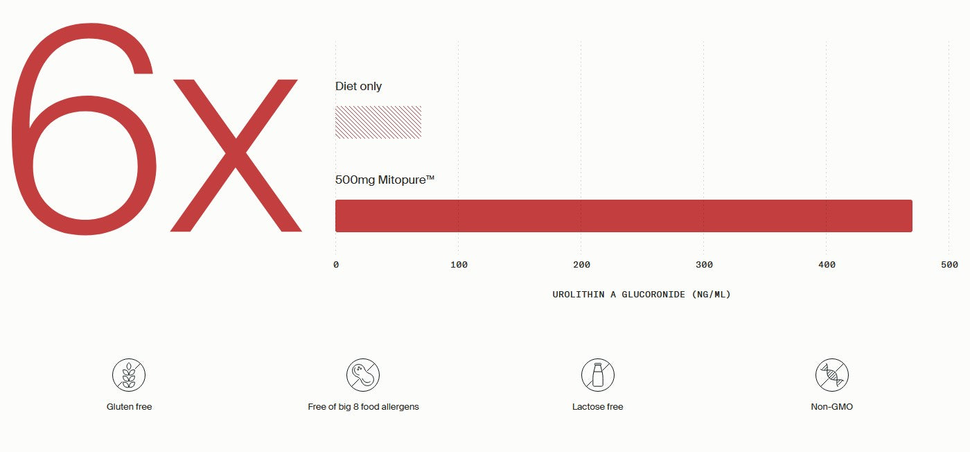Mitopure unlocks 6x more Urolithin A than diet alone*